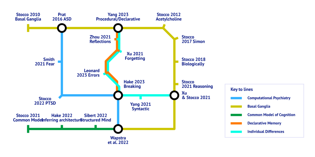 - Stocco, A., Lebiere, C., & Anderson, J. R. (2010). Conditional routing of information to the cortex: A model of the basal ganglia’s role in cognitive coordination. Psychological review, 117(2), 541. https://pmc.ncbi.nlm.nih.gov/articles/PMC3064519/